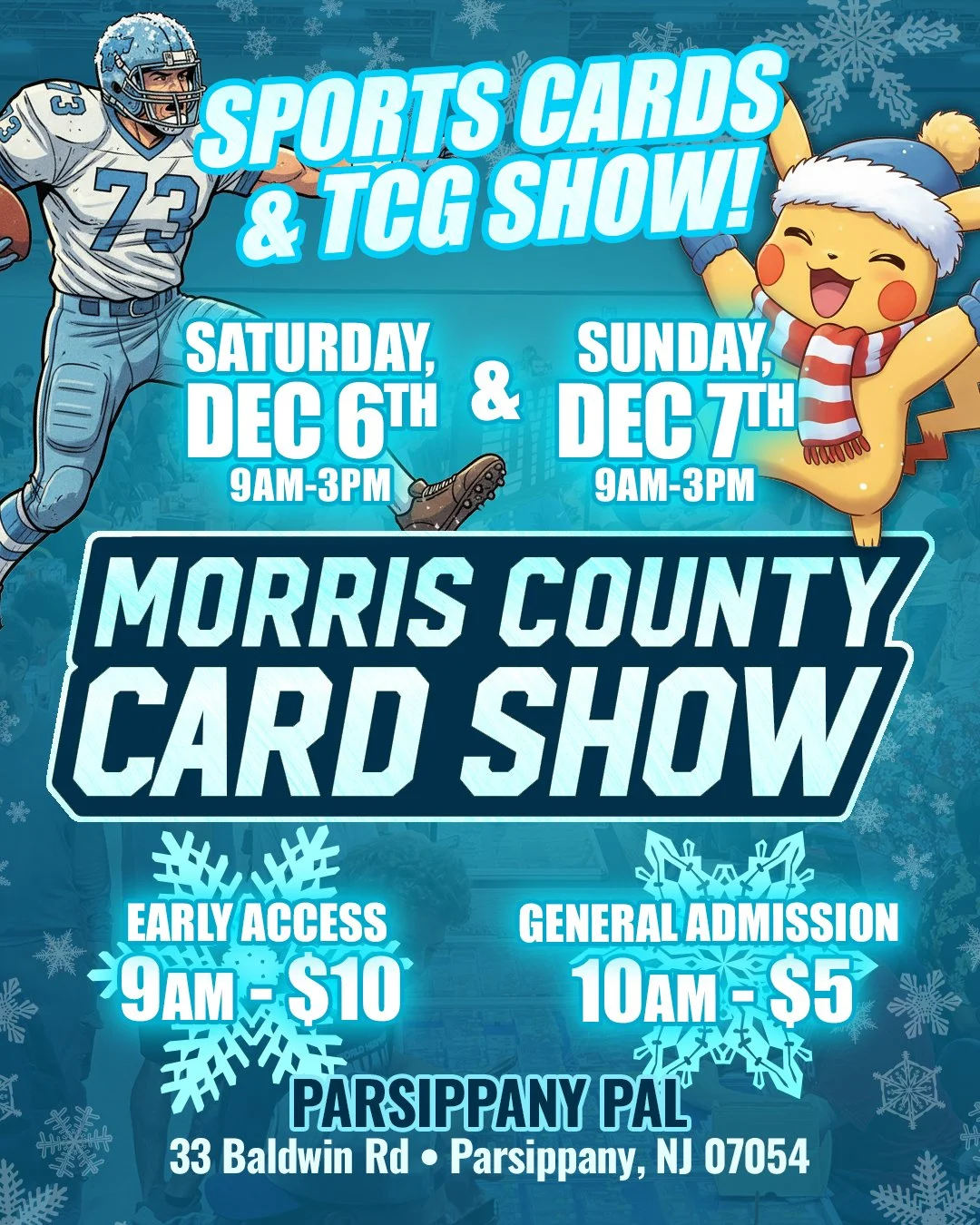 12/6-12/7 Morris County Card Show is back for a TWO DAY SHOW on December 6th and 7th at the Parsippany PAL.